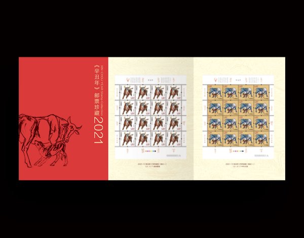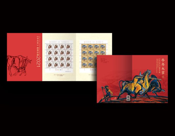 《牛年大吉》大版折是中国集邮总公司传统生肖系列产品,邮折中含《辛丑年》新邮版式一。