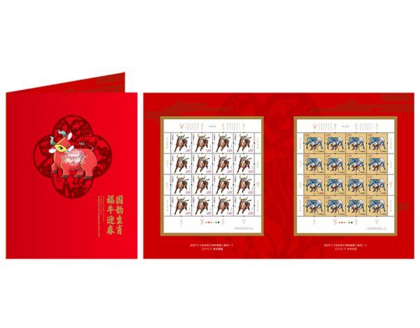 在2021年来临之际,著名设计大师吴冠英继2018年《国韵生肖·兴家旺业》戊戌年纪念册、2019年《国韵生肖·“猪”事亨通》己亥年纪念册、2020年《国韵生肖·瑞鼠献宝》庚子年纪念册之后,再度创作新年贺岁生肖产品——《国韵生肖·福牛迎春》邮票·银章珍藏,通过生肖画作及吉祥纹饰,传递“吉祥富裕、长治久安”的美好祝愿。