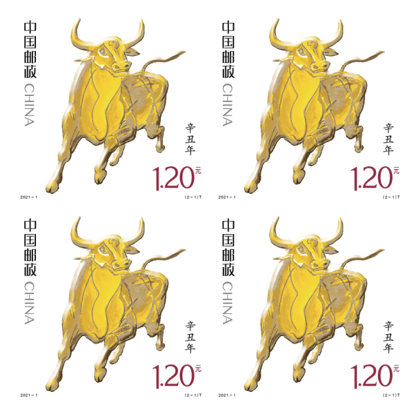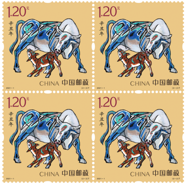 《牛年大吉》为陶瓷邮票四方连