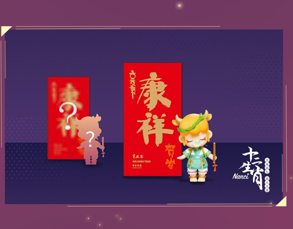 产品中Nanci丑牛手办和《辛丑年》邮折传递着牛年的喜悦与祝福,随机出现的其他生肖盲盒和邮折则是期待与惊喜,还有可能抽到Nanci隐藏凤凰手办。如果盲盒与邮折的生肖完美配对,为你带来双重好运!