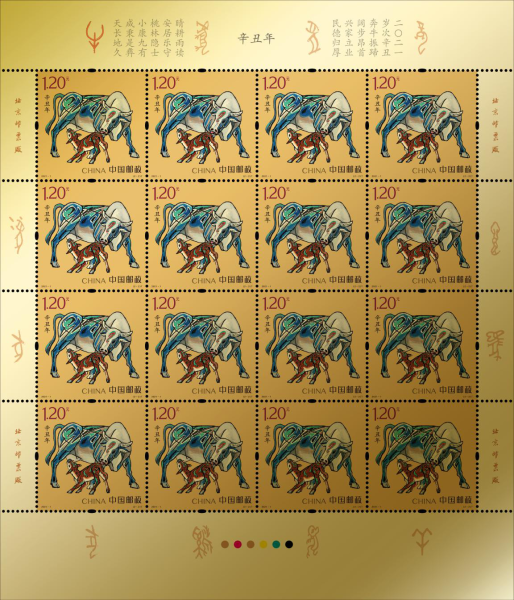 2021年辛丑牛年即将到来,利用专利技术将邮票纸与纯金结合;采用Au999黄金仿印《辛丑年》大版:每版0.5g,共两版。产品配:邮折、贵金属国检证书、收藏证书。