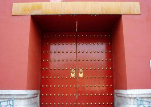 纪念章正面除五牛形象外,选用敞开的故宫宫门图案,朱红油饰,上面安有行列整齐的铜质鎏金门钉。门钉,不仅仅是门板的重要构件,也是装饰品。金色的门钉,装饰着朱红的宫门,一次次开启与闭合,伴随着人来人往,迎来送往间,任岁月流淌,沧桑变化。