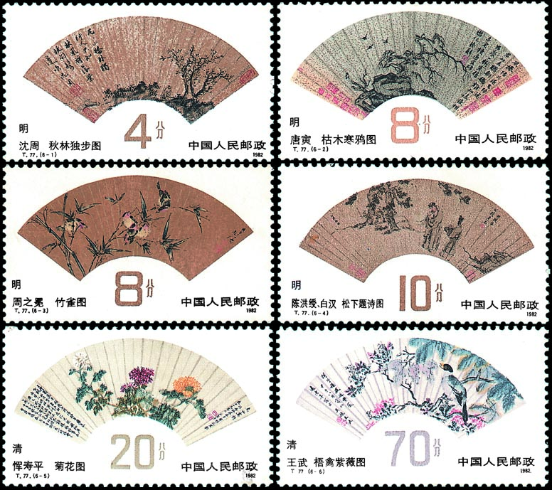 最佳印刷邮票T.77《明、清扇面画》第3枚《竹雀图》