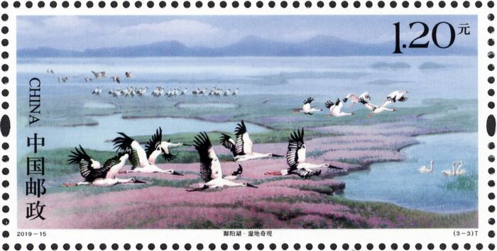| 《鄱阳湖》特种邮票 | ![]() ![]() ![]() | 中国邮政定于2019年7月20日发行《鄱阳湖》特种邮票1套3枚。详情如下: 志号:2019-15 图 序 图 名 面 值 (3-1)T 石钟奇音 80分 (3-2)T 鞋山神韵 1.20元 (3-3)T 湿地奇观 1.20元 邮票规格:60×30毫米 齿孔度数:13.5×13度 整张枚数:12枚 整张规格:206×180毫米 版 别:影写 防伪方式:防伪纸张 防伪油墨 异形齿孔 荧光喷码 设 计 者:杨文清 责任编辑:何金梅 印 制 厂:北京邮票厂 出售办法:自发行之日起,在全国指定邮政网点、集邮网厅(http://jiyou.11185.cn)、中国集邮手机客户端和中国集邮微信商城出售,出售期限6个月。 |