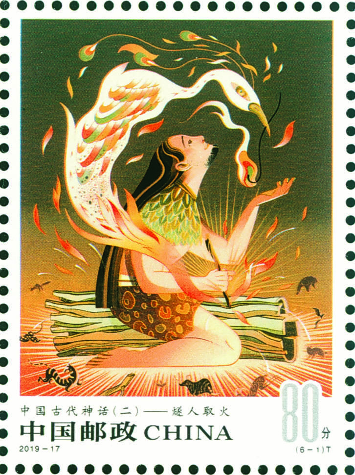 | 《中国古代神话(二)》特种邮票 | ![]() ![]() ![]() ![]() ![]() ![]() | 中国邮政定于2019年8月6日发行《中国古代神话(二)》特种邮票1套6枚。详情如下: 志号:2019-17 图 序 图 名 面 值 (6-1)T 燧人取火 80分 (6-2)T 伏羲画卦 80分 (6-3)T 神农尝百草 1.20元 (6-4)T 嫘祖始蚕 1.20元 (6-5)T 仓颉造字 1.20元 (6-6)T 大禹治水 1.20元 邮票规格:30×40毫米 齿孔度数:13.5×13度 整张枚数:16枚 (一、二图各8枚/张;三、四图各8枚/张;五、六图各8枚/张) 整张规格:150×210毫米 版 别:影写 防伪方式:防伪纸张 防伪油墨 荧光喷码 设 计 者:倪传婧 责任编辑:干止戈 印 制 厂:北京邮票厂 出售办法:自发行之日起,在全国指定邮政网点、 集邮网厅(https://jiyou.11185.cn)、中国邮政手机客户端和中国邮政微邮局集邮微信商城出售,出售期限6个月。 |