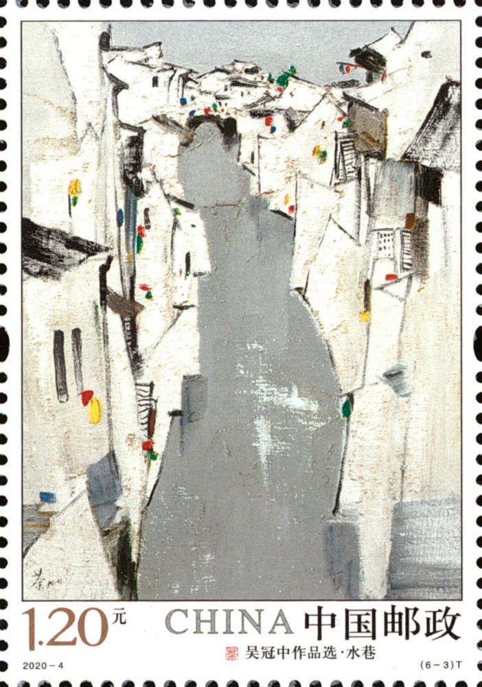 | 《吴冠中作品选》特种邮票 | ![]() ![]() ![]() ![]() ![]() ![]() | 中国邮政定于2020年3月20日发行《吴冠中作品选》特种邮票1套6枚。详情如下: 志号:2020-4 图 序 图 名 面 值 (6-1)T 高粱与棉花 1.20元 (6-2)T 瓜藤 1.20元 (6-3)T 水巷 1.20元 (6-4)T 巴山春雪 1.50元 (6-5)T 双燕 1.50元 (6-6)T 鹤舞 3元 邮票规格:一至三图35×50毫米 四至六图50×30毫米 齿孔度数:一至三图13×13.5度 四至六图13度 整张枚数:8枚 整张规格:一至三图176×138毫米 四至六图136×158毫米 版 别:胶印 防伪方式:防伪纸张 防伪油墨 异形齿孔 荧光喷码 设 计 者:王虎鸣 资料提供:吴可雨、吴有宏、吴乙丁 责任编辑:李金薇 印 制 厂:北京邮票厂 计划发行数量:780万套 出售办法:自发行之日起,在集邮网厅 (https://jiyou.11185.cn)、中国邮政手机客户端和中国邮政微邮局集邮微信商城出售,出售期限6个月。全国指定邮政网点预订兑付和现场零售时间将根据疫情防控情况另行通知。 |