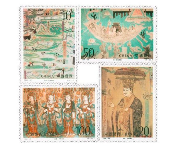 1996年8月15日,为了宣扬中华民族光辉灿烂的古代文化艺术遗产,邮电部发行了《敦煌壁画(第六组)》特种邮票,全套4枚,小型张1枚。详情如下: 志号:1996-20