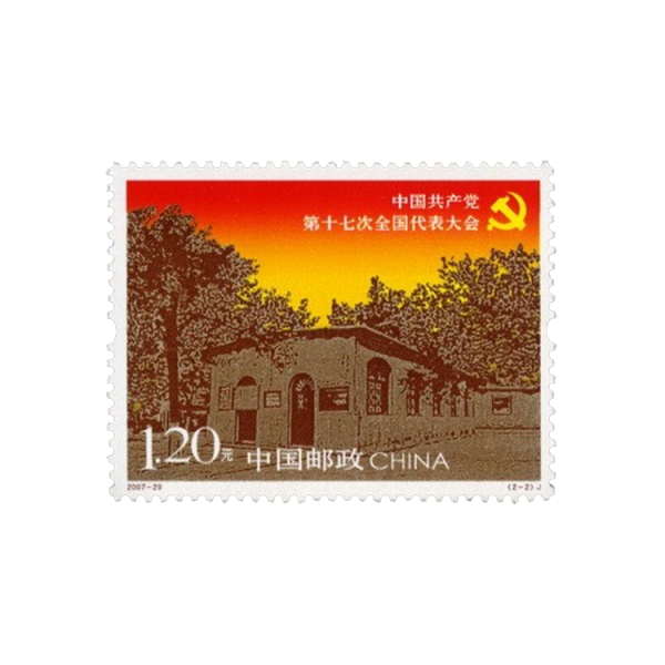 2007年10月15日发行《中国共产党第十七次全国代表大会》纪念邮票1套2枚,小型张1枚。详情如下: 志号:2007-29