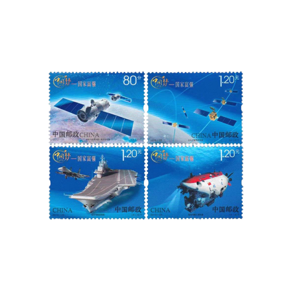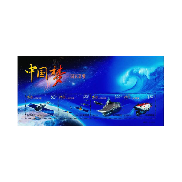 中国邮政定于2013年9月29日发行《中国梦—国家富强》特种邮票1套4枚,小全张1枚。详情如下: 志号:2013-25