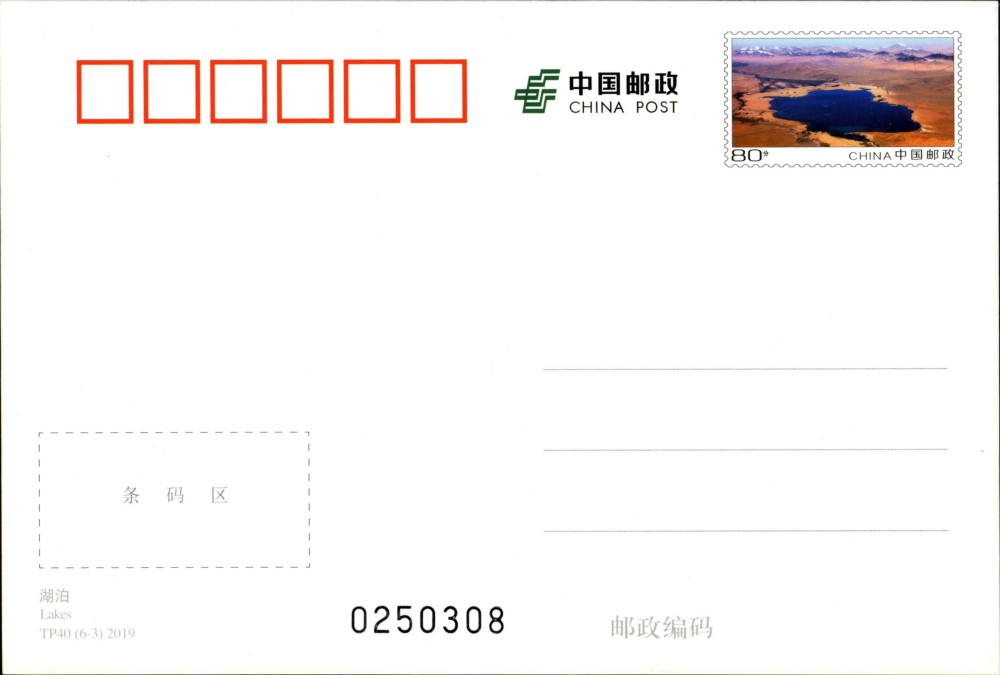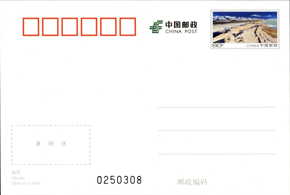 中国邮政定于2019年8月20日发行《可可西里》特种邮资明信片1套6枚(封套式),明信片名称分别为:冰川、河流、湖泊、草甸、动物、植被,全套售价6.6元。