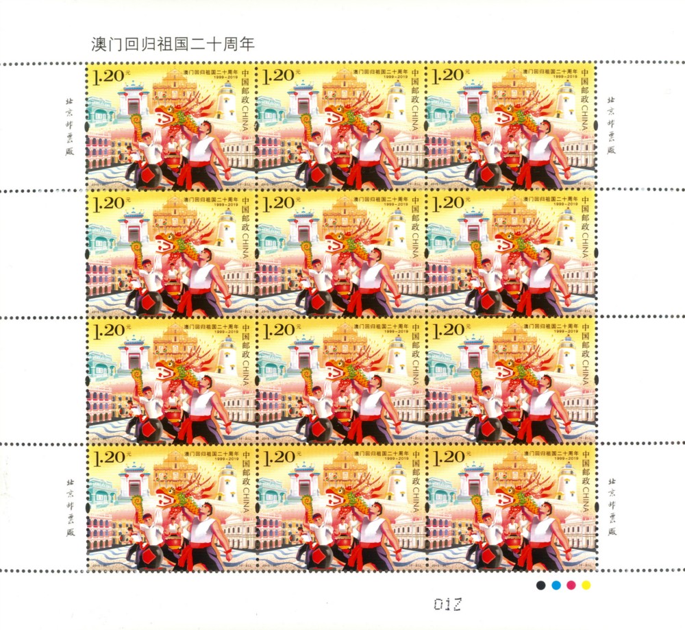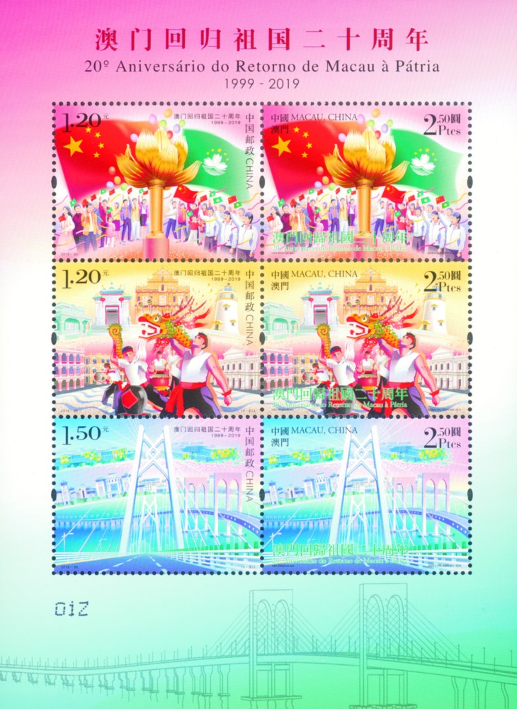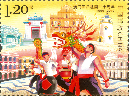 中国邮政定于2019年12月20日发行《澳门回归祖国二十周年》纪念邮票1套3枚。全套邮票面值为3.90元。