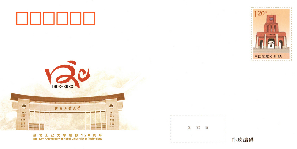 中国邮政定于2023年10月15日发行《河北工业大学建校120周年》纪念邮资信封1套1枚。详情如下: